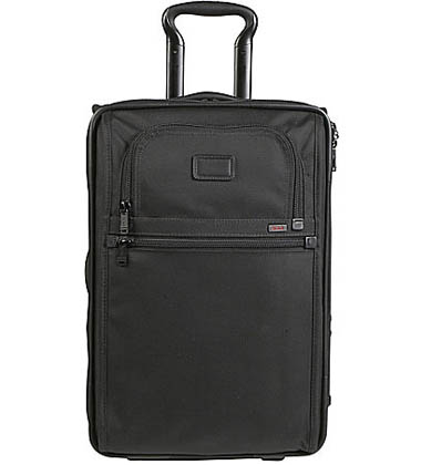 Compact, expandable case, Tumi signature ballistic nylon, it features a removable garment sleeve and accessories pockets. The main compartment expands 2.5".