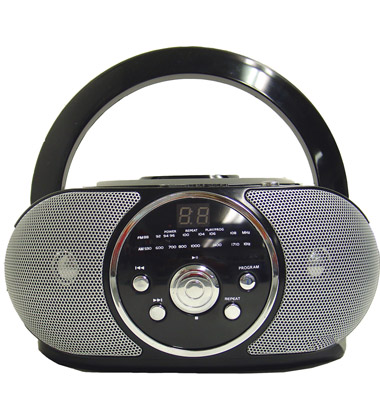 SuperSonic retro style portable MP3 player with top loading programmable CD player features AM/FM radio, AC adapter, rod antenna and full function remote control.
