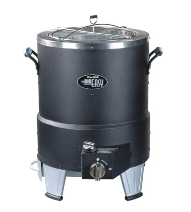 Provides oil-less cooking with patented infrared cooking technology. Easily cooks large cuts of meat, produces juicy, flavorful taste. Features cool touch handles, grease tray, rotary ignition, meat thermometer and propane hose.