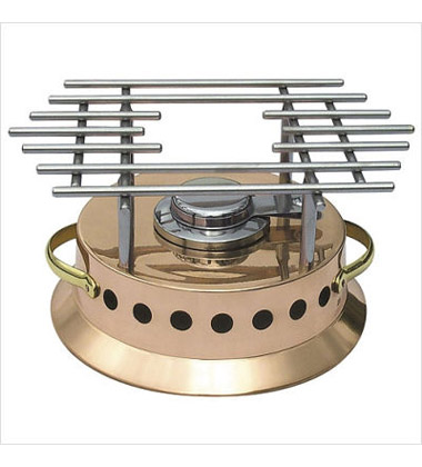 Mauviel easy care, portable burner for home entertaining. Features: 1.2 to 2 mm thickness, heater with alcohol burner. 8.6” dia x 6.5” height, copper. Part of the M’plus formerly known as the Cuprinox collection, Made in France.
