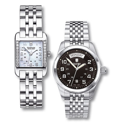 Woman’s: made in Switzerland with precision Swiss analog quartz movement, sapphire crystal, 18 full-cut diamonds, stainless steel case, water resistant to 100 feet, push-button deployment clasp.
