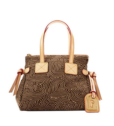 Mini Bag, 9” x 6 1/2” x 8” with one inside zip pocket, two inside pockets, cell phone pocket, hot pink lining, strap drop length: 5”.