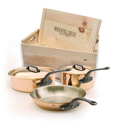 5pc set includes: 1.9 qt covered saucepan, 3.4 qt covered saute, 10.2” fry pan. Copper heats more evenly and much faster than other materials. French copper cookware features 2.5mm thick polished copper exterior. 18/10 stainless steel interior, stainless steel rivets, cast iron handles. Superior cooking control and food flavor.
