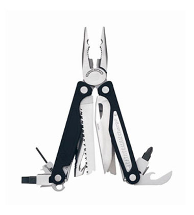 Features aluminum alloy handles and 154CM knife blade that holds its edge 3-times longer than typical stainless steel. Also: needle nose pliers, pliers, wire cutters, hard wire cutters, serrated knife w/ cutting hook, saw, wood/metal file, diamond coated file, large bit driver, small bit driver, large screwdriver, ruler, bottle/can opener, wire stripper, 8 double sided bits, lanyard ring.