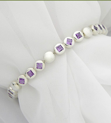 Contemporary, with genuine princess cut purple amethyst, 7.5" long, sterling silver.