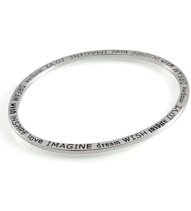 Sterling Sentiments bangle bracelet engraved with five words: Dream, Wish, Inspire, Love, and Imagine.
