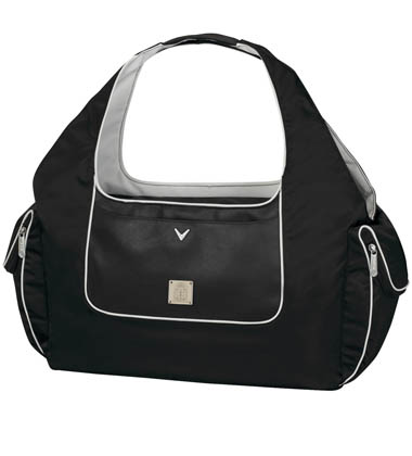 Large, zippered main compartment. Dual, external zippered side pockets. Front magnetic stash pocket. Jeweled, rhinestone logo and zipper pulls. Tote-style handles can be carried by hand or over the shoulder. Reinforced abrasion-resistant bottom. Tri-grommet ventilation promotes air circulation. Logoed interior lining. Exterior Pearl nylon twill fabric.