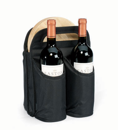 Includes: round wooden cheese board, multifunction corkscrew and three knives. Exterior features two insulated wine bottle compartments (wine NOT included) and top grab handles. Insulated, zippered compartment to keep cheese and other foods chilled during travel. Interior storage for cheese board and knives. Velcro closure to main compartment, top grab handles and front slash pocket. Cheese board (Thailand Oak) 8” dianeter; Small knife (4.75L); Middle knife (5L); Big knife (4.75L).