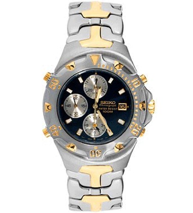 Seiko Watch - Hour, minute and small second hands, alarm can be set on a 12-hour basis with two small hands, chronograph can measure up to 60 minutes in 1/5 seconds, alarm hands can indicate the time in a different time zone, LumiBrite Hands and markers, water resistancy - 100M. (Many watch styles are available, including stylish womens models.)