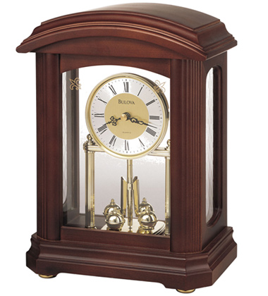 two-tone metal dial, revolving pendulum. Dimensions: 11 1/2 x 5 x 8 1/4