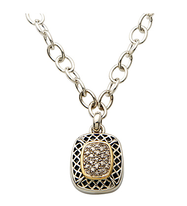 Contemporary yet classic. Diamond necklace on an 18 heavy cable link chain with a toggle clasp, .15 cttw round diamonds, set in 14K yellow gold & sterling silver.