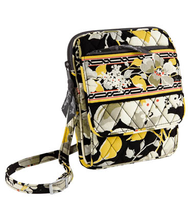 A magnetic snap on the front flap offers easier access to six interior slots, an ID window and zip pocket. The adjustable shoulder strap and zip-top closure make this option as secure as it is pretty.