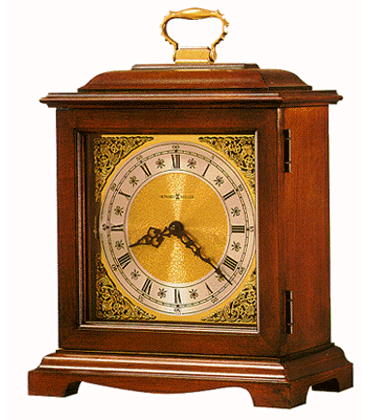 Bracket clock, cherry finish on select hardwoods and veneers; quartz, dual chime movement plays Westminster or Ave Maria chimes, and features volume control and automatic nighttime chime shut-off option.
