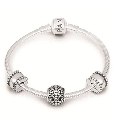 Clouds Silver Lining, best quality sterling sliver, features bracelet with Pandora Clasp, A Clouds Silver Lining Charm, and 2 Pandora Sterling Silver Clips with beaded edges. Please note your size when ordering, allow extra length if you plan to add more charms.