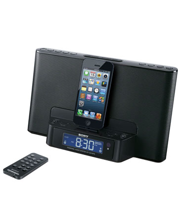 Robust audio with MEGA BASS® & MEGA Xpand. Works with Apple® devices using LightningTM Connector (not included). Wake/Sleep to iPod®, iPhone®, radio, or buzzer, 2-5-7 day alarm for wake-up flexibility, digital AM/FM radio, flexi-dock charges iPod® and iPhone® when docked, auto time set, auxiliary audio input for additional audio sources, free D-SappliTM App for expanded speaker/dock capability.