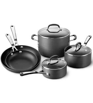 Simply Caphalon brings durability, performance and value to your kitchen. Includes: 8 inch omelette pan, 10 inch omelette pan, 1 qt sauce pan w/cover, 2 qt sauce pan w/cover & 6 qt stock pot w/cover.