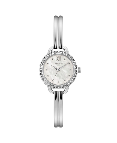 Jewelry-inspired design shimmers with 40 crystals on stainless steel case with white mother-of-pearl dial. Bracelet-meets-bangle style with easy to adjust jewelers clasp closure. Water resistant to 30M. Case diameter 24mm, case thickness 7.3mm.