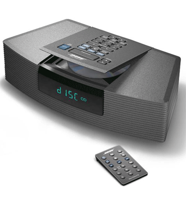 Bose Wave Radiio with CD Player - Award-winning sound for any room in your home. Its small size and push-button simplicity make it ideal for the kitchen, bedroom or den. Acoustic waveguide speaker technology Dual alarms and credit card-sized remote.
