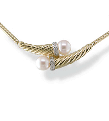 Cultured Pearl and Diamond Necklace - 16 14 karat gold 7 x 7.5mm cultured pearls with .06 carat total weight of diamonds.