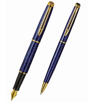 Waterman Hemisphere Fountain and Ballpoint Pens. Made in France, slim and elegant marbeled lacquer, complimented by 23kt gold plating.