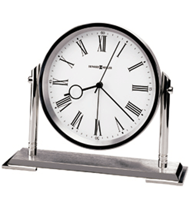 Howard Miller Universal Alarm Clock - Finished in brushed and polished chrome, features an oversized dial that adjusts for just the right viewing angle. Glass crystal, felt bottom and quartz alarm movement with included battery. 6-1/2 x 8 x 2-1/4