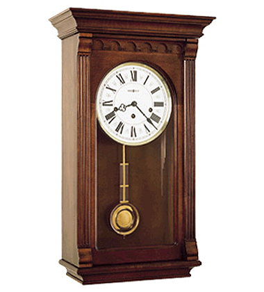 Polished and raised brass pendulum with grid, polished chime rods, cherry finish on select hardwoods and veneers, key-wound, Westminster chime movement with chime silence option and durable bronze bushings.