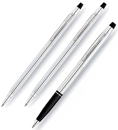 Chrome Trio Set includes a ballpoint pen, pencil and Rollerball Selectip Pen, in brightly polished chrome