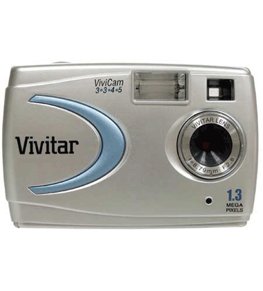 Vivitar Digital Camera - 1.3 meg, fixed focus lens, fully automatic, JPEG, AVI, 8 MB built-in SD RAM memory, accepts SD or MMC memory cards up to 256 MB (not included). Software included is for PC only. Camera connects by USB to PC: Windows 98SE/2000/Me/XP; Mac: OS 9 or later; and Lycoris Desktop LX: Amethyst Update 3 or higher (mass storage device). Requires: 2 AA batteries.