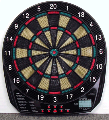 Electronic Darts - Multi players, multi games, automatic shut-off, voice or melody, requires 4 AA batteries (not included). 20 x 18 x 1 1/2