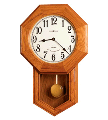 Howard Miller Wall Clock - Elliott with convex glass, gold-tone detailing on lower glass, quartz, dual chime movement with volume control and automatic nighttime chime shutoff option.
