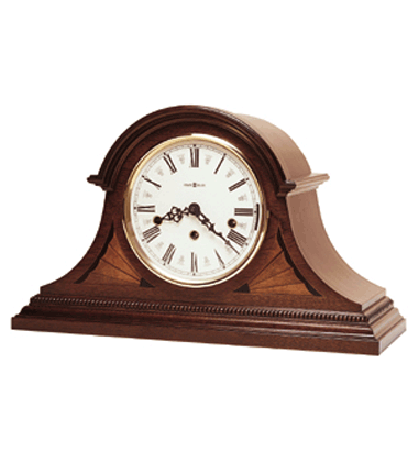 Howard Miller Downing Clock - Modified tambour finished in rich Copley Mahogany with exquisite ebony and maple fan marquetry. Durable bronze bushings, key-wound, triple chime movement with silence option.