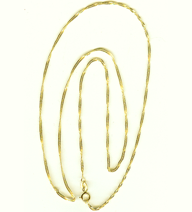 24" long, wonderful for your pendants or to wear alone. Italian 14kt gold, woven with a twist to increase reflectivity.