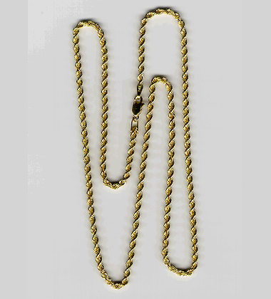 Rope Necklace - Strong, flexible, classic 14K Italian gold solid 20” rope necklace