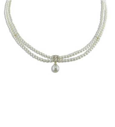 Pearl Drop Necklace - 16 1/2” freshwater cultured pearl and diamond accent (.04 ctw) 14K necklace