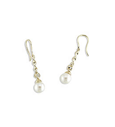 Pierced Earrings - Yellow 14K gold, each with 6.5mm cultured pearl & diamond accents (.04 ctw)
