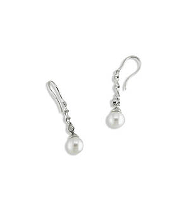 Pierced Earrings - White 14K gold, each with 6.5mm cultured pearl & diamond accents (.04 ctw)