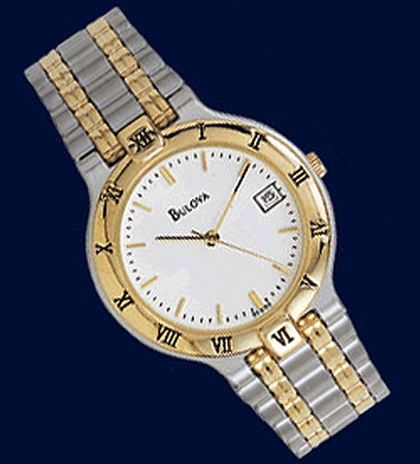 Bulova Watch - Mens, ivory dial, stainless steel bracelet, water resistant 100 feet