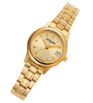 Wittnauer Watch - Womens Precision Swiss quartz calendar movement with second hand, mineral crystal, goldplated stainless steel case and bracelet, water resistant to 100 feet