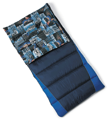 38" X 79" oversize bag with 5 lbs of Insul-Therm fill. Features a cotton blend liner, +25 degree temp rating, storage pocket, self-repairing zipper, and 2 elastic straps for storage.