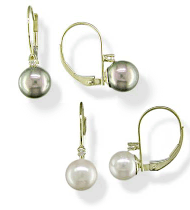 Your choice of black or white cutured pearls, 14K pierced settings and 7mm pearls with 0.4 cttw diamonds.
