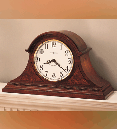 Cherry finished with decorative moldings, Carpathian elm burl overlays, select hardwoods and veneers, quartz chime movement with volume control and automatic nighttime chime shut-off option.