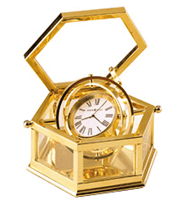 Howard Miller Madeline Clock - Gimbaled clock inside a hexagon-shaped, solid brass glass box. Felt bottom, quartz movement includes battery. 1-3/4 x 4 x 3-1/4
