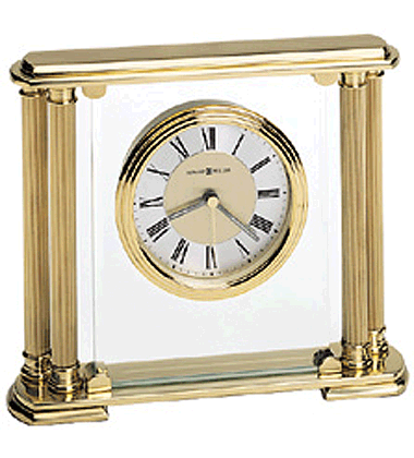 Howard Miller Athens Clock - Solid brass, beveled glass and reeded columns make this battery operated clock a truly handsome timepiece. 6 1/2” x 7 3/4” x 2”