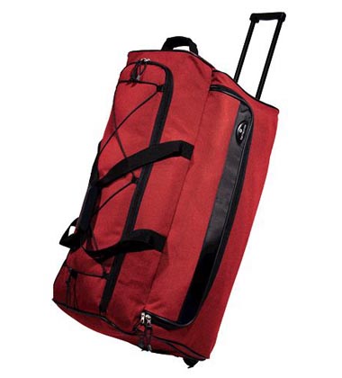 Rugged 600 denier polyester fabric, smooth rolling in-line skate wheels and retractable pull handle.