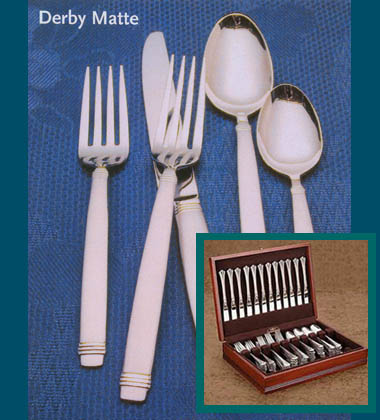 40 pc. service for 8, 5 pc. hostess set, quality stainless steel. Packed in hardwood cushion lined chest.