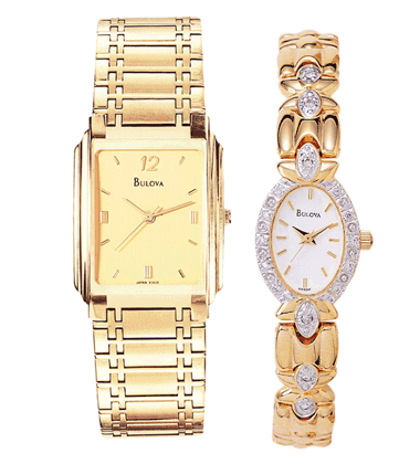 Men’s: Gilt dial, curved crystal, fold over buckle, water resistant to 100 feet.