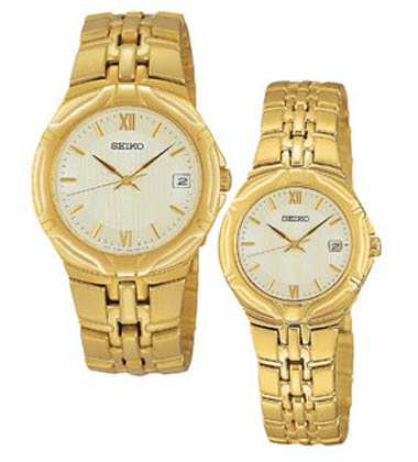 Goldtone plating, calendars, water resistant to 30 meters, has LumiBrite hands & markers.