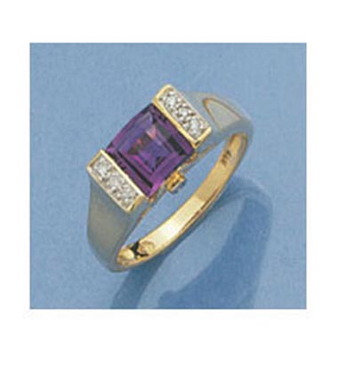 Striking modern designer creation incorporates an amethyst with .5 pt. t.w. diamonds set in 14K yellow gold.
