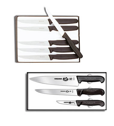 Quality chefs set & 6 steak knives, black fibrox handles.