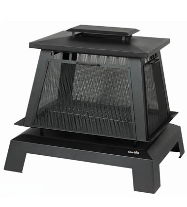 Heavy-duty all steel construction outdoor fireplace. Easily tend fire with removable side screens. Features durable, porcelain coated finish, heavy duty log rack and elevated fire platform. Accommodates standard size firewood in the 543 sq. in. burn area.